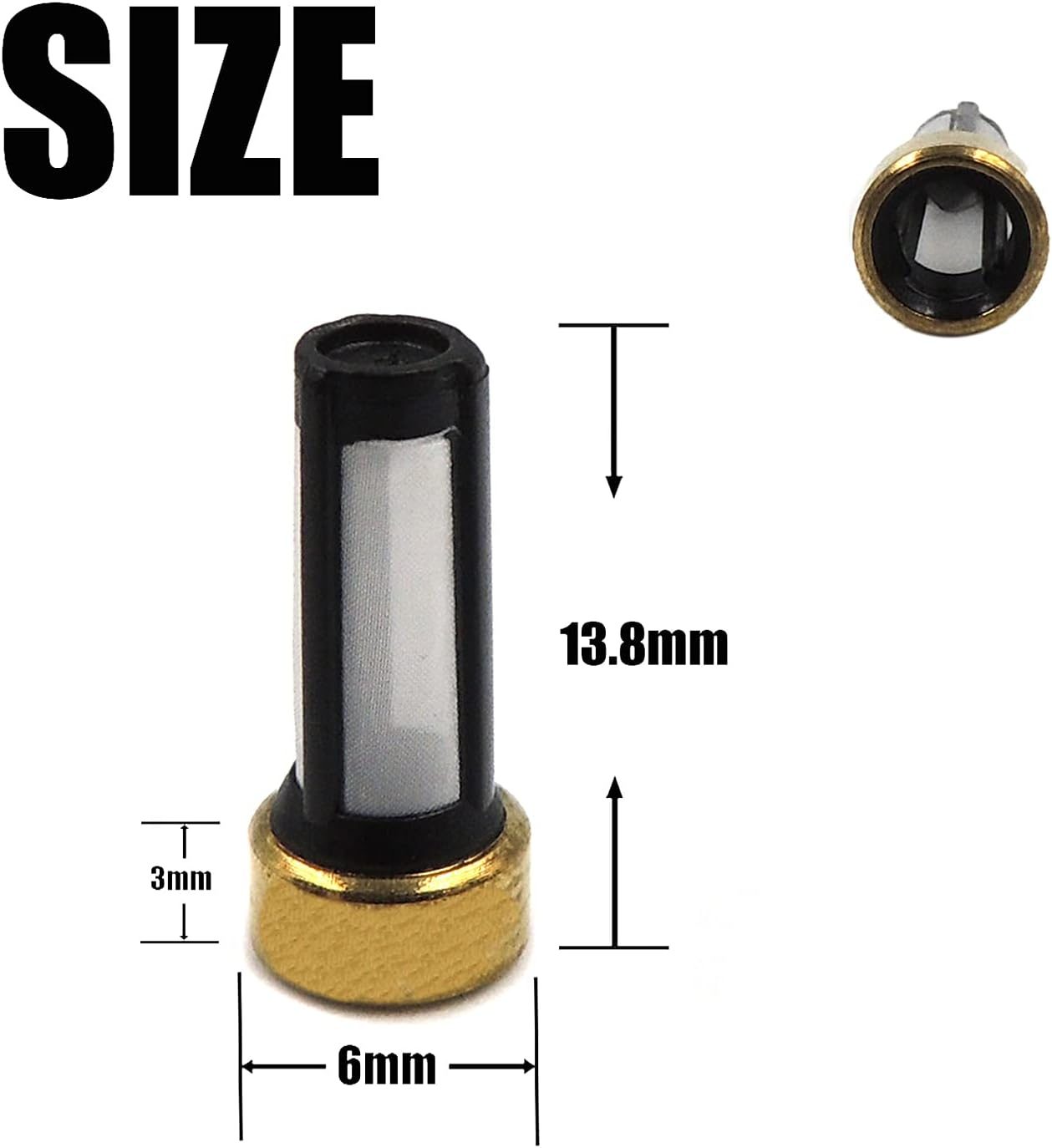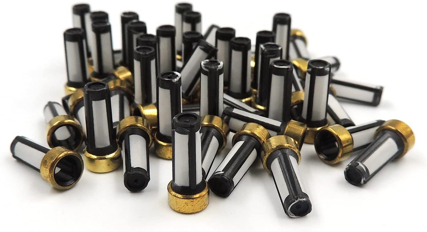 Standard nylon micro‑mesh basket filters for Bosch/Siemens/Delphi passenger car injectors. Verify part numbers before service.